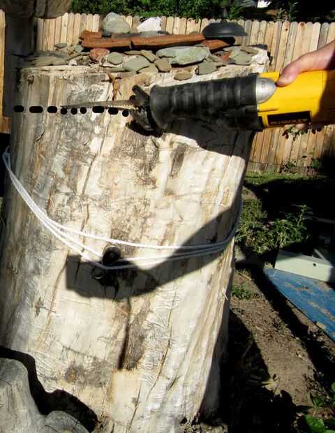 recomiendo una sierra de cadena para ello.  Corte a lo largo de su marca y tómese su tiempo.