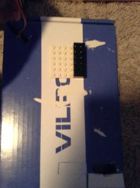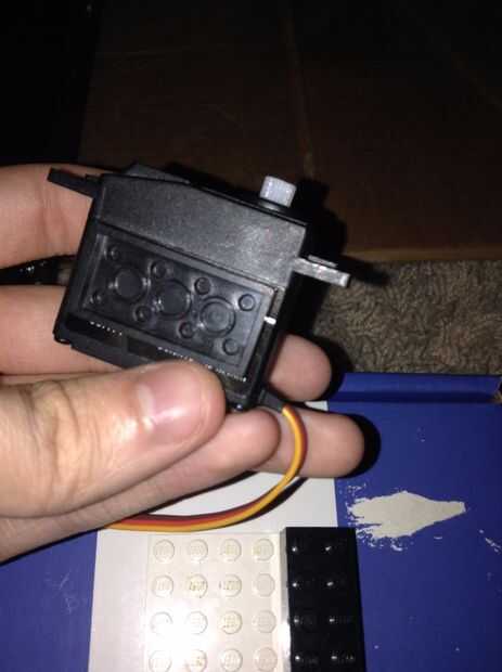 el servo es lo que me dio la mayoría de los problemas durante este proyecto. Cuando el servo le eligió una dirección al azar que manera girar así que pegué legos a cada lado del servo y un plato de lego a la caja por lo que si el servo comenzó a girar la otra manera sería solo dale la vuelta. también mantiene el servo en su sitio sin tener que pegar abajo.