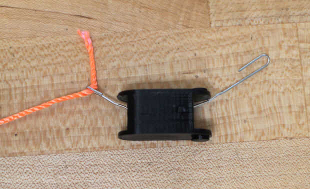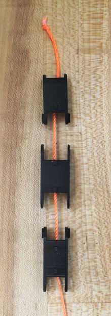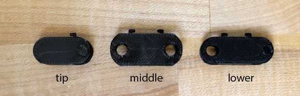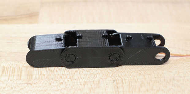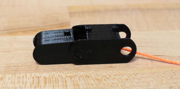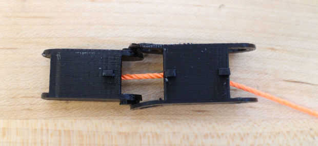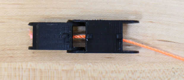 Aunque se han impreso por separado, los dedos están diseñados para encajar juntos. Línea de los segmentos del dedo y enrósquelos (en orden) con el cable o cadena. He utilizado un clip doblado para ayudarme con la cadena, pero cuando cambié al cable no lo necesito. Comprobar que los segmentos están en el orden correcto, luego acóplelos. El segmento medio va en la parte exterior de la parte inferior y segmentos de punta y debe montar algo bien. Repita este proceso para todos los cinco dedos.