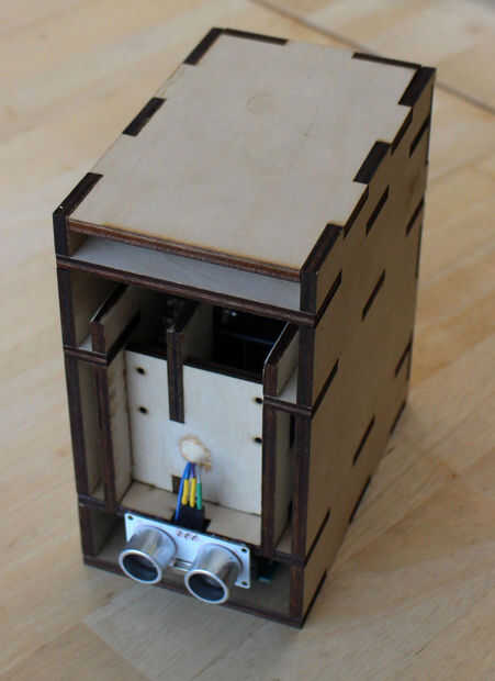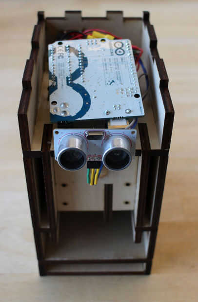 La base invertida del tirón y arreglar la electrónica dentro de él (no olvide agregar una batería!). Tratar de hacer que se sientan tan plana como sea posible, con la conexión usb de la Arduino mirando hacia el frente (así, usted puede fácilmente conectar y editar el código). Coloque la parte inferior y pegamento si es necesario.