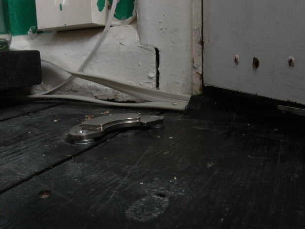 Había una gran brecha entre la puerta y el suelo. No es suficiente para hacer los imanes ineficaces, sino que decidí aumentar la potencia aumentando el imán de piso, fijación a través de dos arandelas en cada extremo.