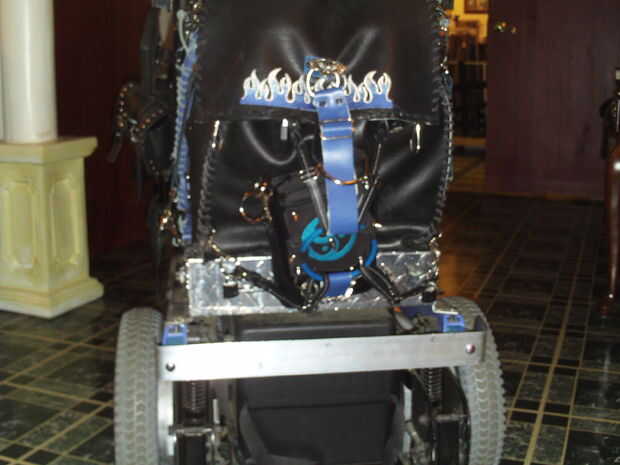 Un día, estaba viendo a un cuidador tratando de manejar mi silla de ruedas. BANG! BOOM! La silla de ruedas primero se cerró de golpe en uno de nuestros contadores y luego en una pared. El Presidente ya estaba en la velocidad más baja, así que afortunadamente, el daño fue menor, pero me puso a pensar sobre la necesidad de topes en una silla de ruedas. Para obtener instrucciones sobre la fabricación de parachoques para la parte delantera de una silla de ruedas, comprobar hacia fuera mi instructable parachoques y ruedas salvajes reposapiés pastillas en Este instructable es sobre cómo hacer un parachoques trasero-silla de ruedas que no sólo parece fresco, pero también es funcional.