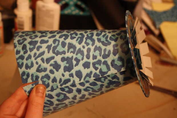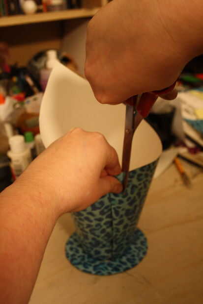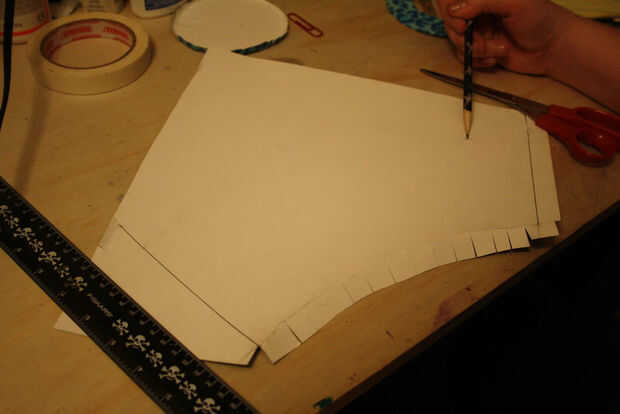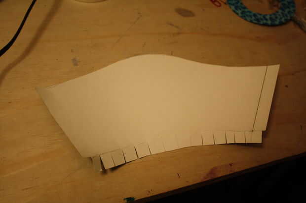 Corte la forma usted a hecho, pero deja una pestaña en un lado. (por lo que tiene un compromiso para unir los lados juntos)