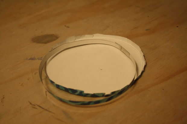Cinta de doble cara todo el camino alrededor de la delgada franja que acaba de hacer.