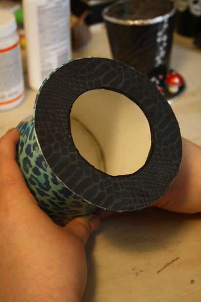 Recorte. Cortar el exterior ligeramente más pequeño que la línea que trazó. (así que usted no puede verlo desde el lado)