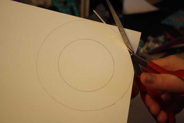Trazar dos círculos una vez más, o traza el círculo de corte de cartón.