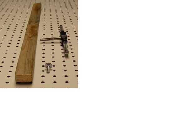 La palanca de ajuste tiene un perno de estufa corta en un lado, y las dimensiones no son críticas. Elegí un trozo de madera gruesa de 3/4" y 1-1/2" de ancho, corte a 28" bordes largo, arena suave. He perforado un orificio de diámetro de 13/64"(0.234) a través del palillo 9-1/2" de un extremo y golpeada con un grifo de corte de metal de 5/16"-18. El tornillo estufa 5/16" diámetro fue comprado con una parte roscada que funcionó hasta su porción de la sección representativa cuadrada. El perno debe comprar o cortar de modo que su sección roscada no llegará a absolutamente todo el camino a través del palillo. Copa redondeada de la cabeza del perno debe presentado o tierra para hacer un plano del tamaño de un centavo.