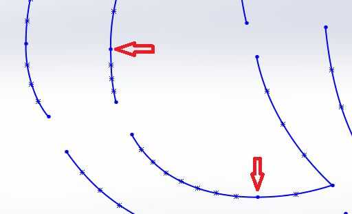 Usted necesita tener cuidado de donde se inicia la nueva spline aunque. Tiene que ser en uno de los extremos de las ranuras existentes (probablemente recortadas). Elija la herramienta spline y comenzar en algún lugar donde el punto no es una cruz, sino un punto completamente de color azul. Dibuja la spline utilizando algunos de los puntos de la spline existentes, para obtener una forma que coincida con. No utilizar todos ellos, que no es necesario, hasta que se ve bien. Deje la tira en el extremo próximo.