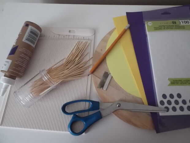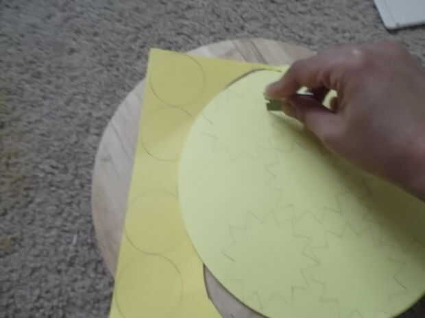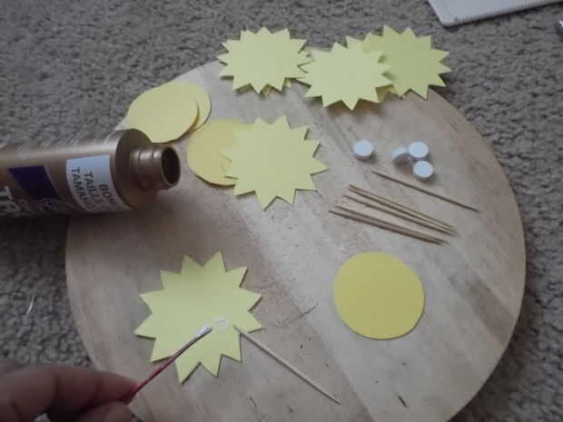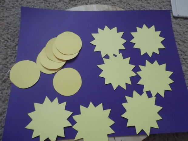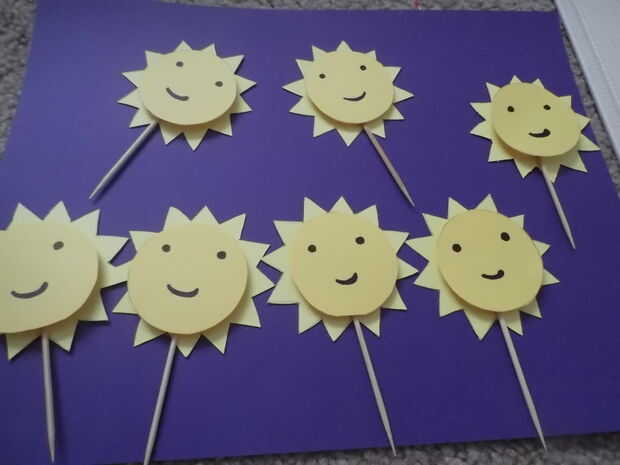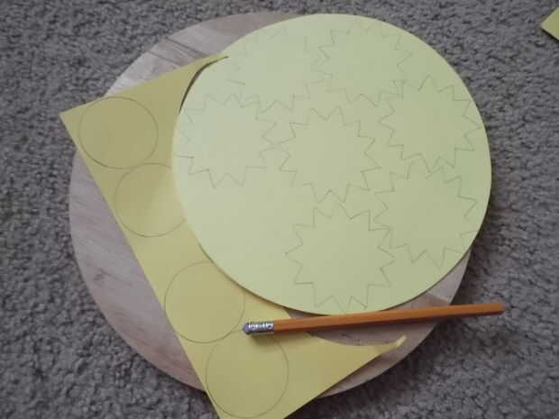 1. primero dibuja los rayos del sol y círculos en papel de cartulina de colores amarillo.
