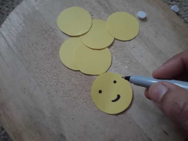 5 dibujar la boca y los ojos por el sol y el palillo a los rayos del sol con espuma adhesiva para darle aspecto 3D
