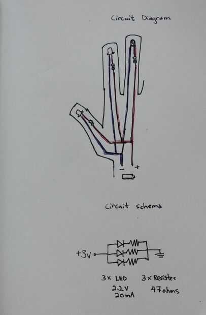 c. puede utilizar cables alternativos en lugar de los cables del auricular pero encuentro cables de auricular para ser compacto (cada cable ya tiene 2 filamentos) y flexible. Alternativamente, puede usar hilos conductores y coserlas en un guante.