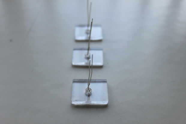 e. poner LED en el acrílico y doblar las piernas. Cada uno tocando una pieza de las cintas conductoras.