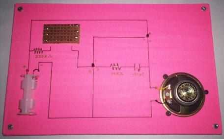 CUANDO CUALQUIER CUERPO HUMANO TOQUE EL SENSOR DE CONTACTO QUE SE CONECTA A LA BASE DEL TRANSISTOR BC-548. ESTA CONDUCTA DE TRANSISTOR CON LA CONDUCTANCIA DE LA PIEL HUMANA. CUANDO TRANSISTOR BC-548 COMENZAR LLEVANDO A CABO ES FORZADO A TRANSISTOR BC558 PARA EMPEZAR A LLEVAR A CABO. ASÍ QUE CONSEGUIR EL SONIDO DE LA ALARMA DEL ALTAVOZ. CUANDO TOMAMOS DE NUEVO LA MANO ENTONCES HACE NO CONECTADO A LA BASE DEL TRANSISTOR BC-548. POR LO QUE SE HACE NO CONDUCTA NO CONSEGUIMOS EL SONIDO DE LA ALARMA.
