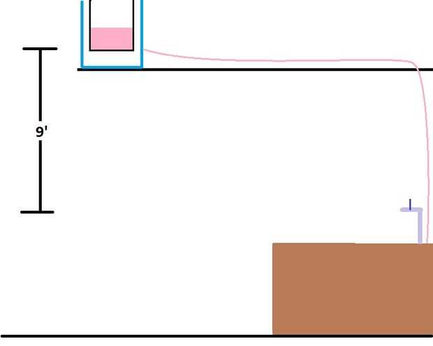 Seguro que la ecuación no es exacta, no sé cuál será la densidad final del líquido, y la altura fue calcuated desde el fondo del cañón hasta el final de la llave.