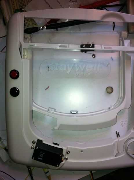2. Corte una abertura e instale el segundo interruptor micro en la parte interior de la puerta. Este interruptor detecta el pet en.