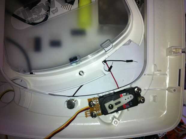 1. se necesita cortar una abertura rectangular para el servo con una herramienta dremel.