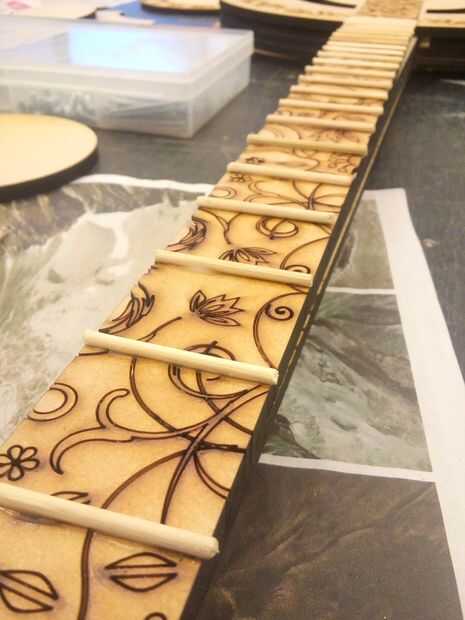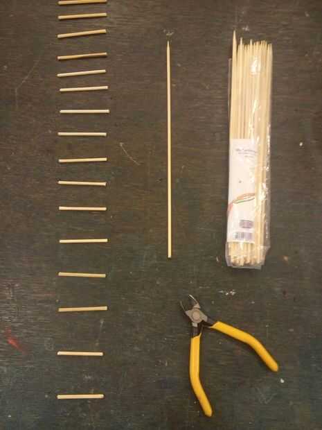 Los trastes fueron hechos por pinchos ol ' plano de corte en piezas pequeñas. No te olvides de poner algún barniz sobre ellas para impedir que rompe con almádena.
