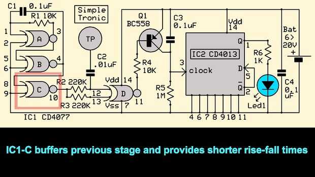 El circuito de interruptor Touch detecta tensiones vagabundas producidas por voltajes de las cañerías y la acumulación electrostática en una habitación. Son tacto dos placas y la resistencia del dedo cambia el voltaje en el pin 2 o 6 para cambiar el