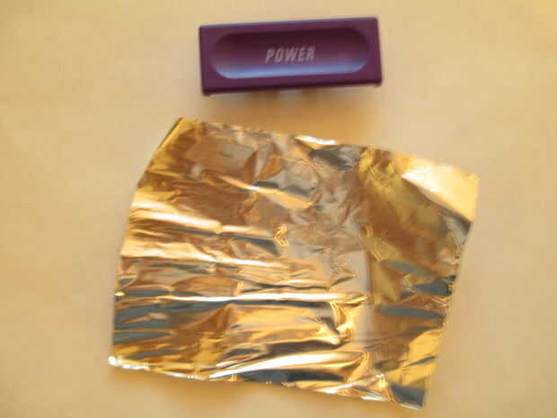 Haz tu papel y clip listo. Tomar el clip y doblar la mitad hacia fuera en ángulo recto. Una mitad de ella en el agujero en la parte inferior de la potencia botón y deja la otra mitad fuera. Ahora tapa el botón de encendido en asegurarse de que suficiente cubre el clip de papel para sostenerla en lugar de aluminio.