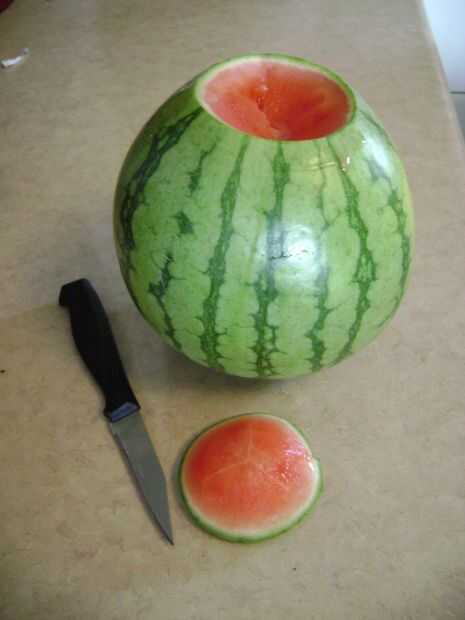 Usted puede cortar una pequeña muesca de la tapa para que sea más fácil rellenar el melón después de que sus invitados terminación inevitablemente el contenido original.