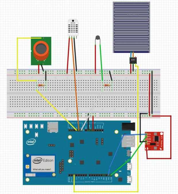 Los sensores se unen a las placas breakout con jefes masculinos y por lo tanto, puede conectar directamente a Edison a través de los cables puente de hombre a mujer.