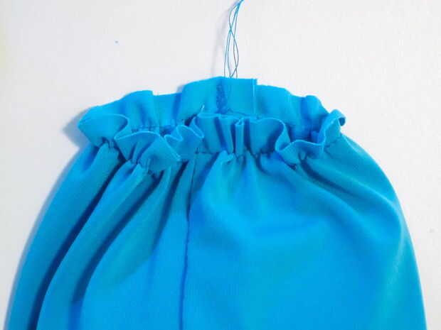 Hilvanar el borde libre de los delanteros. Usted puede hacer esto con una puntada larga con la máquina de coser o a mano. Tirar de los hilos y el espacio uniformemente los frunces creados.