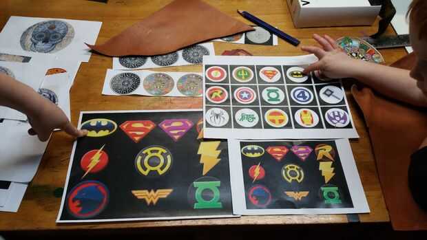 Recuerda invertir la imagen en su edición software lo contrario que la imagen se mostrará hacia atrás después de la transferencia de fotos. Se me olvidaba esto así que tuvimos que elegir a super héroes que podrían revertirse. La idea era individual podrían crear insignias, no se esperaba el resultado.