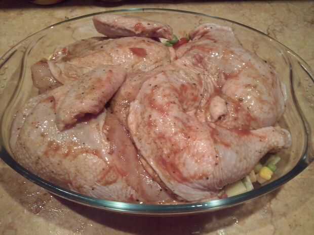 después de 30 minutos lo destape y deje hasta superficie de pollo es de color rojo