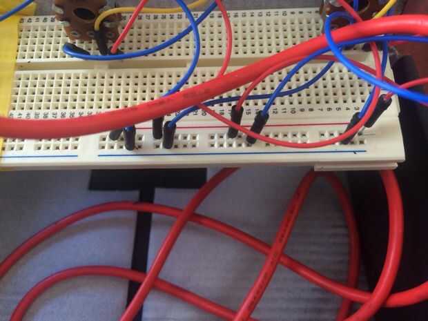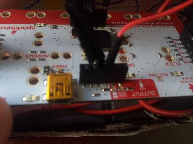 Este instrumento de trabajo, Makey Makey fue utilizado como la Junta de que toda la programación y reparación provienen. Un lector de 5V y un conector de tierra fueron conectados de Makey Makey a la placa para permitir el uso extendido de cada uno de los pernos, para el mayor número de entradas están utilizando (5 perillas y 3 potenciómetros).