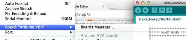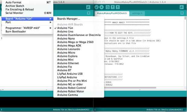 Arduino debe ser cargado, y un boceto que permite MIDI y enviar mensajes analógicos debe cargarse en el Makey Makey. Makey Makey debe elegirse como el puerto que funciona a través de Arduino y envía la información a. En el caso de este instrumento, se revirtieron las lecturas de voltaje para trabajar más eficientemente en Ableton, hacia la derecha aumentando los valores de tensión y hacia la izquierda haciendo lo contrario.