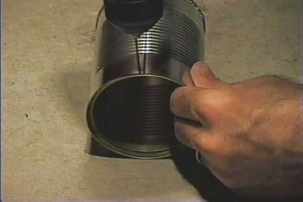 Las latas necesitan tres agujeros. Dos en la parte superior para suspensión de algo y uno en la parte inferior para el alambre de metal.
