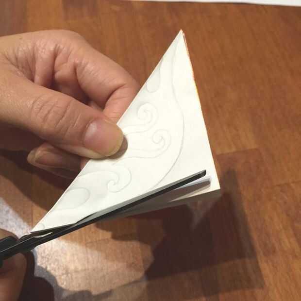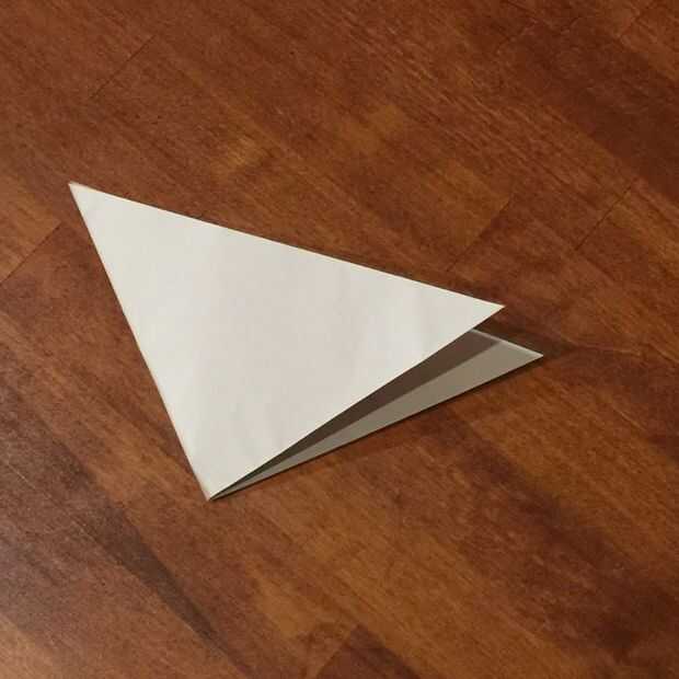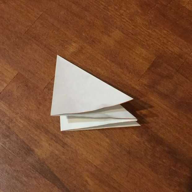 Dobla el papel en un triángulo dos veces. Hacer un "accordion-fold" para que tenga un ángulo de 45 grados en el extremo centro.