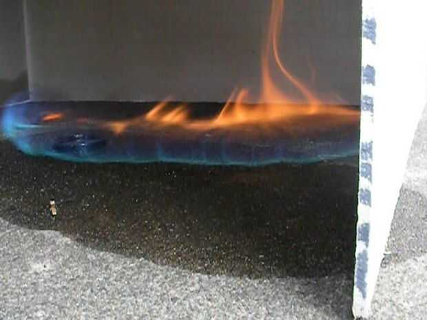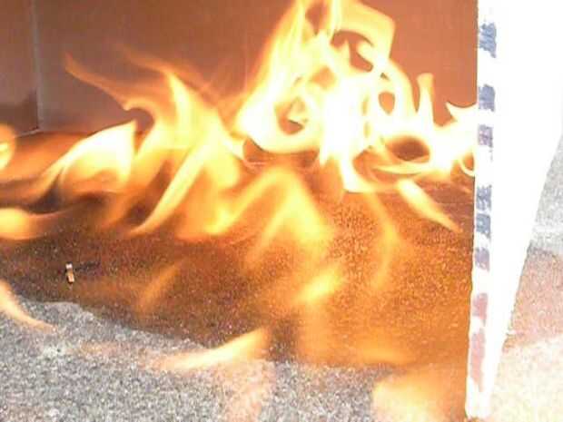 La gasolina es altamente inflamable. Asegúrese de que no haya nada inflamable alrededor: gasolina, tanques de propano, familiares o cualquier cosa hecha de madera. La siguiente secuencia de fotografías en el video muestran la ignición del combustible. Tenga en cuenta la forma de que las llamas engullen brevemente a la cámara, aunque el gas derramado no llega a la ubicación de la cámara (era de esta cámara sobre un trípode, con todas las personas a distancia segura):