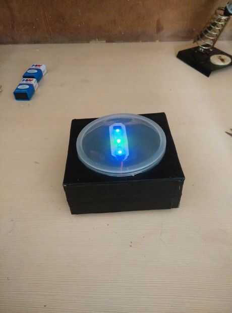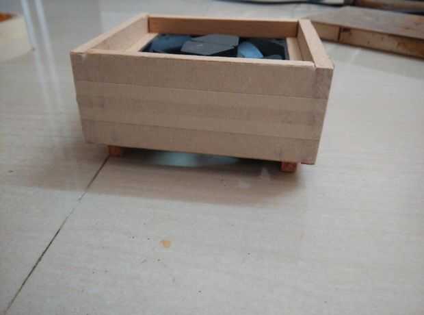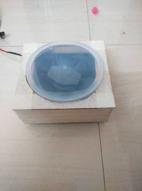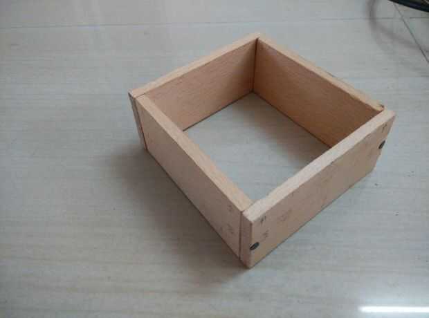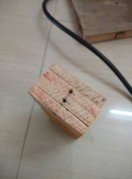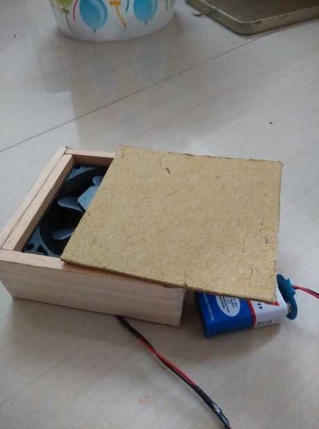 Utilicé madera para construir la base, tamaño justo para incluir el ventilador y una batería de 9 V. Utilizando la máquina del taladro de perforar agujeros en la madera y fijarlos juntos en rectángulo.