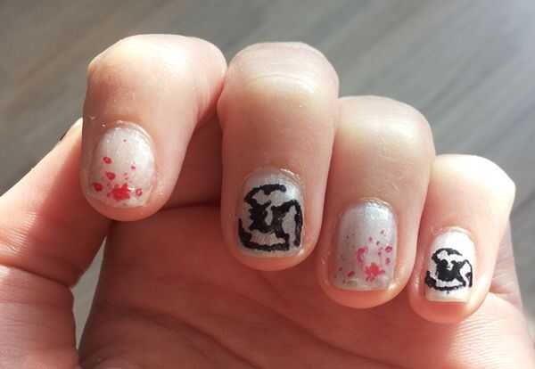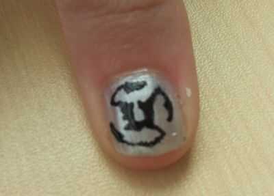 de uñas es divertido! No soy muy bueno en el arte de uñas pero pensé que sería divertido intentar algo que no sea esmalte para uñas. Por lo tanto, utilicé pintura de tela dorada con esmalte de uñas negro. Puede utilizar pintura de brillo también. Mis