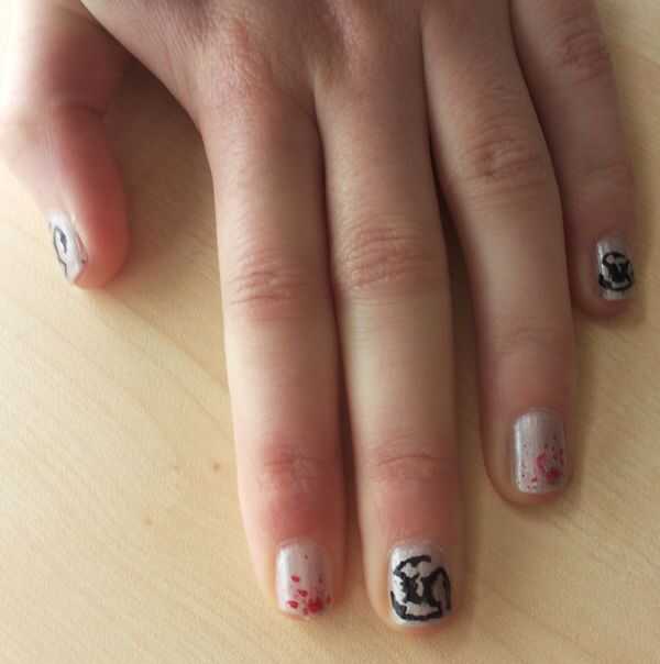 de uñas es divertido! No soy muy bueno en el arte de uñas pero pensé que sería divertido intentar algo que no sea esmalte para uñas. Por lo tanto, utilicé pintura de tela dorada con esmalte de uñas negro. Puede utilizar pintura de brillo también. Mis