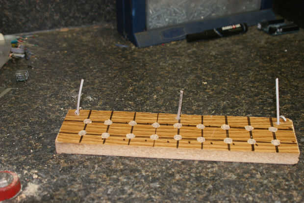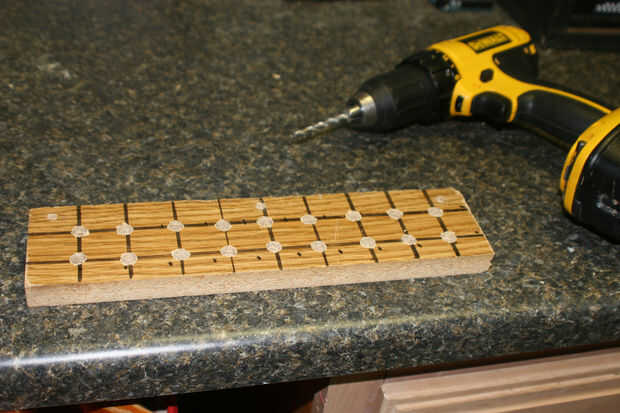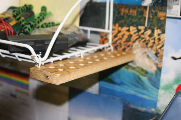 Ahora tiempo para fijar esto a una pared. Podría sólo perforar algunos tornillos se y luego llamar a un día. Pero tenía espacio mínimo de la pared, así que perforar algunos agujeros más pequeños en la espalda y luego inserta un alambre de 12 calibre y había torcido a la madera. Entonces envuelve el alambre alrededor de una percha que había tenido ya en la pared. Puede ser que necesite para referirse a los cuadros para entender lo que quiero decir. Después de eso, perforé un tornillo en la pared en la esquina de la madera como se puede ver en la última foto.