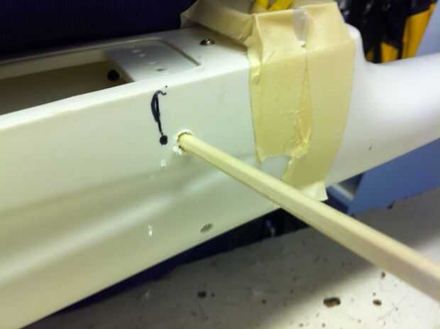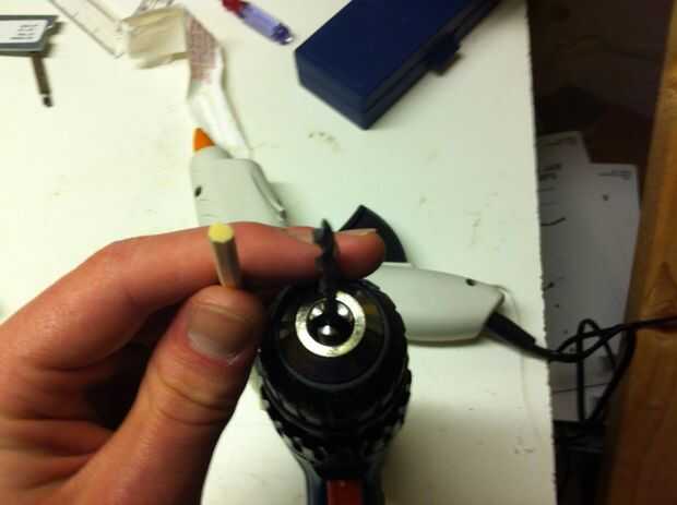 Este es el paso más largo. Encontrar un pedacito de taladro que tiene un diámetro similar a la varilla. Recuerde que más es mejor, siempre se puede hacer el agujero más grande. INDIVIDUALMENTE, no perfore a través del plano, máquina los orificios hasta que las barras de ajuste tanto como sea posible. Luego empuje las barras a través de.