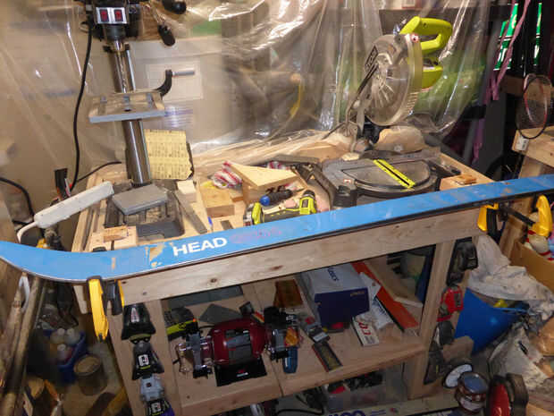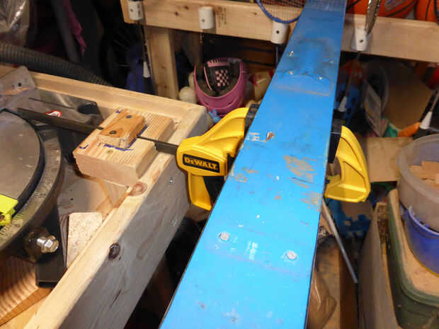 La solución de bajo costo consiste en comprar un par de Dewalt 12" abrazaderas de medio gatillo (lo más probable es que usted tiene ya en su garaje o Home Depot vende para $20/paquete de 2), un pedazo corto de 2 x 4" madera y unos tornillos. Este instructable detalles de cómo construir un soporte que sujeta las pinzas a su banco de trabajo para que usted puede sujetar los esquís en lugar de simplemente apoyándolas sobre una superficie. La belleza de estas abrazaderas de Dewalt es que simplemente apriete el mango para apretar las abrazaderas. Muy fácilmente pueden colocar las pistas de esquí entre las mordazas de goma y apriete las abrazaderas.