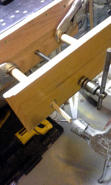 Yo también apliqué uretano aerosol a las superficies expuestas del inacabado de la mordaza para mantener la humedad y todo lo que derrame en él hacia fuera.