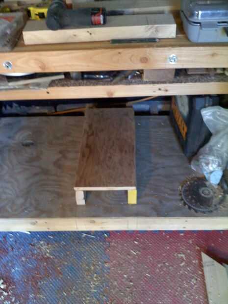 Los laterales de la caja son ligeramente más altos que el portaobjetos y se coloca directamente detrás de las patas traseras. Tuve algunos contrachapado (3/4" creo) ahí por lo que he utilizado como la parte superior de la caja.