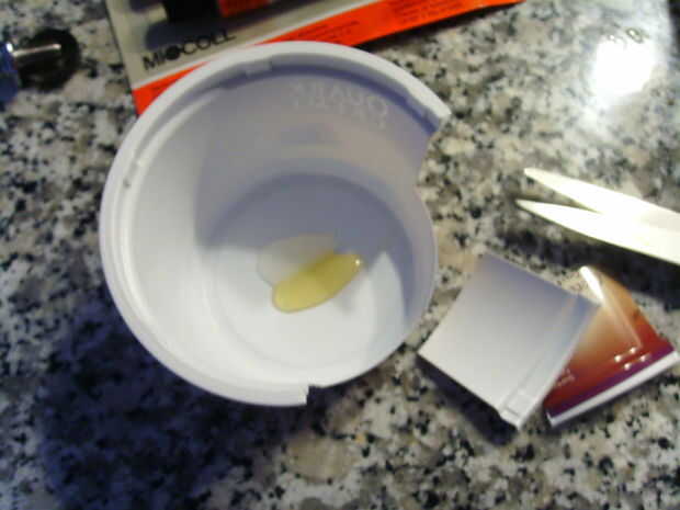Nota: Pegamento es aquí ya mezclado. Se necesita sólo alrededor de 1cm.