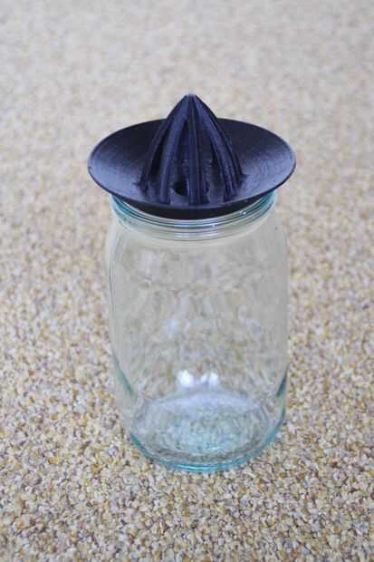 Por ser un poco creativo también puede caber el exprimidor en botellas o frascos que tienen una abertura mayor que 50 mm (o 2 pulgadas). Por ejemplo un tarro de masón.