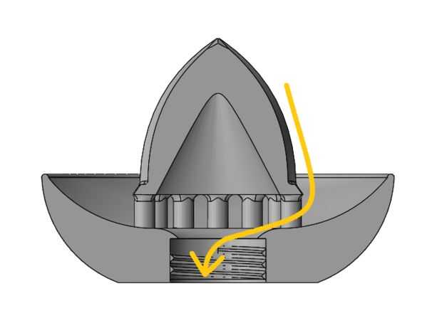 Además de este hay fue también un poco del jugo que se escapa a través del orificio roscado. También el diseño en general fue bastante voluminoso. Así que decidí rediseñar mi exprimidor de cítricos.