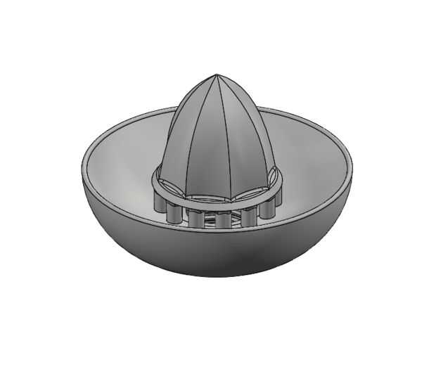 Comenzó a diseñar el primer extractor de cero en un programa llamado Solidworks. Usé un exprimidor de cítricos tradicional, que encontré en mi cajón de la cocina de los padres como referencia.