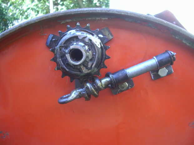 puse el engranaje de la bicicleta en el tubo que debe moverse (su eje) y luego montar el tornillo con sus bujes para que las roscas de tornillo se encaja en los dientes del engranaje.