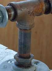 Luego viene un 1/2 pulgada ' t '. La parte inferior de la T se enrosca en el niple y dos pezones cortos se atornillan en los extremos del T.