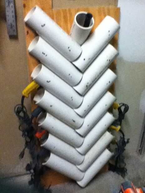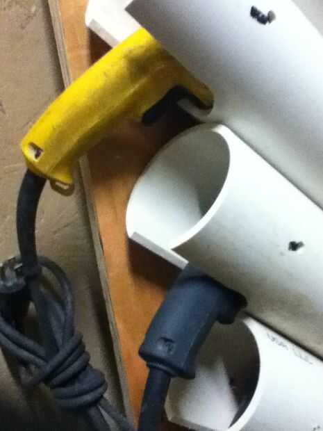 Cada tubo se monta con tornillos de madera de 3/4" #6 sólo dos pero hace que la formación que se enclavija que solía montar para un monte fuerte. Igual no recomiendo holstering el taladro más pesado en el nivel más bajo. Las pistolas de tornillos, taladros y cizallas eléctricas tienen la misma forma de la manija y simplemente deslice el tubo con los mangos caen dentro de las muescas. Las cuerdas entonces deben recogerse hacia arriba para que no se arrastre en el piso. Enrollé el cable en sí mismo pero cinta, Velcro o amarres de cable podría funcionar. Espero que todo esto esperemos que útil y agradable. Por favor, haga preguntas y dejar comentarios. -Samuel