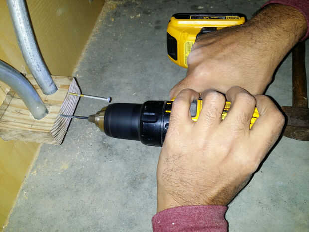 Taladrar un pequeño agujero del mismo diámetro que un clavo a través de la parte posterior del pedal en cada EMT, luego martilló el clavo en la EMT para quedarse. Asegúrese de que el pedal se encuentra en estado "sin activar" al hacer esto para asegurarse de que funciona correctamente. Para la fuerza contraria, formó parte de una cerradura del mag desechados a las uñas, por lo que el peso de le baje la EMT cuando yo no estoy pisando el pedal. Y....