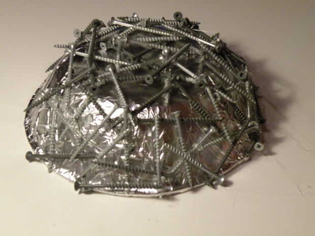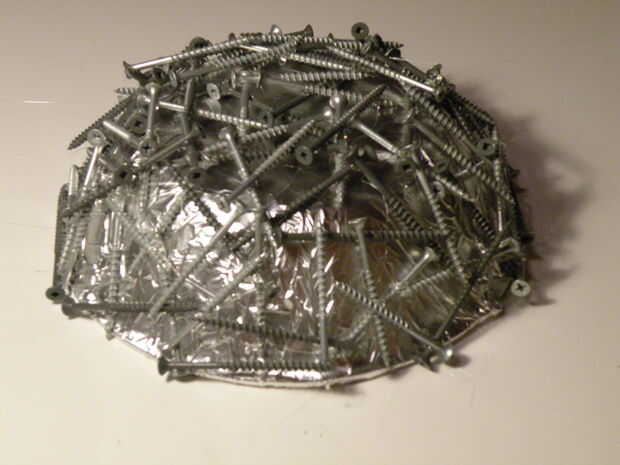 Si va a utilizar este recipiente para servir la comida (y debe, es un éxito en cada partido les traigo a), trata de no tener ningún tornillos con sus extremos puntiagudos que sobresalen por encima del borde de la taza del tornillo; gente no lo apreciará su destreza artística casi tan mucho si les duele.